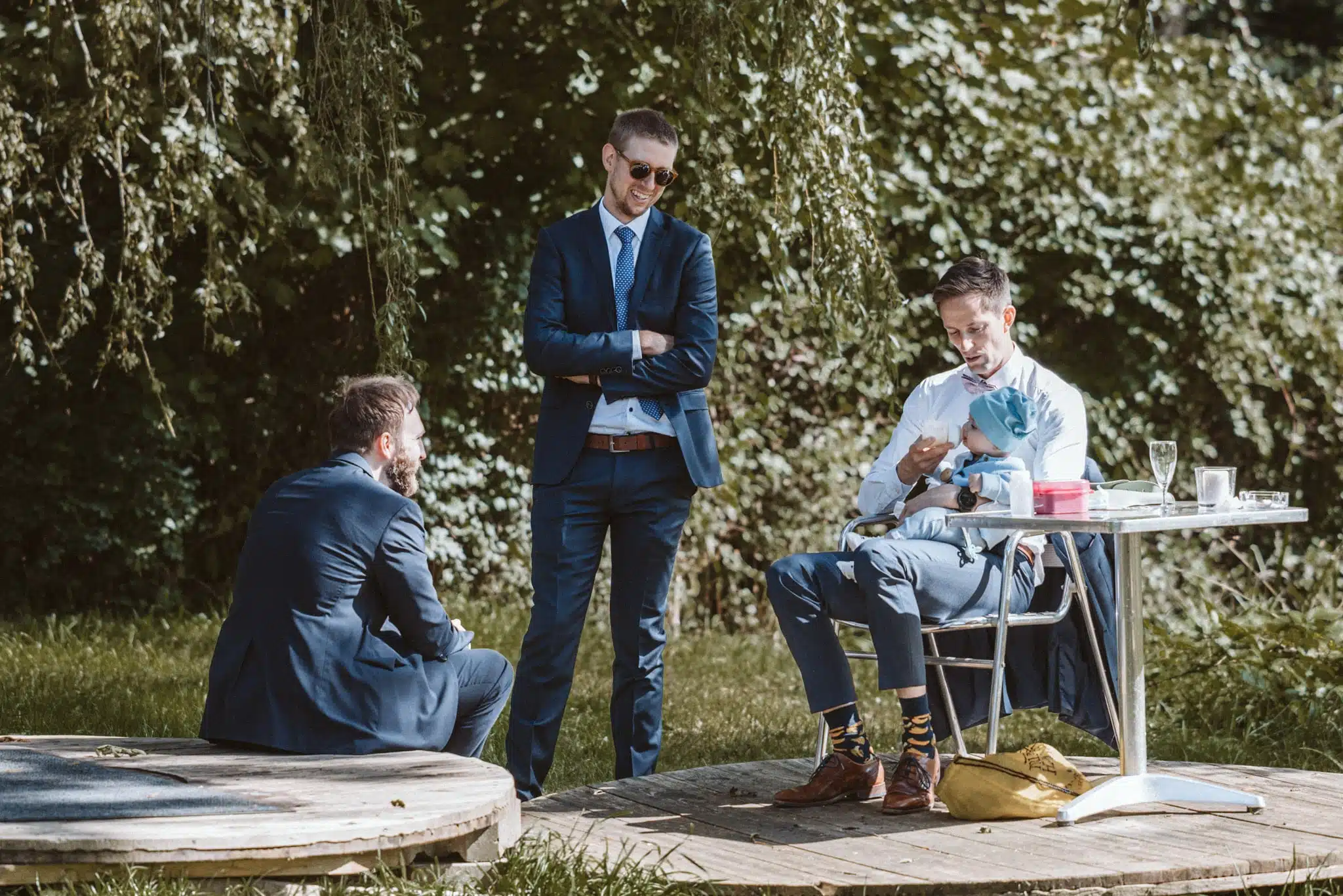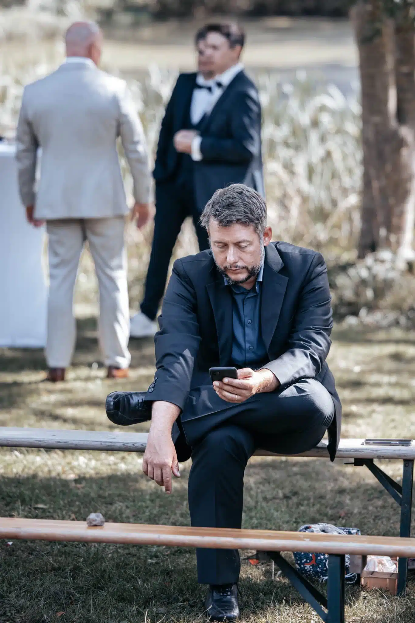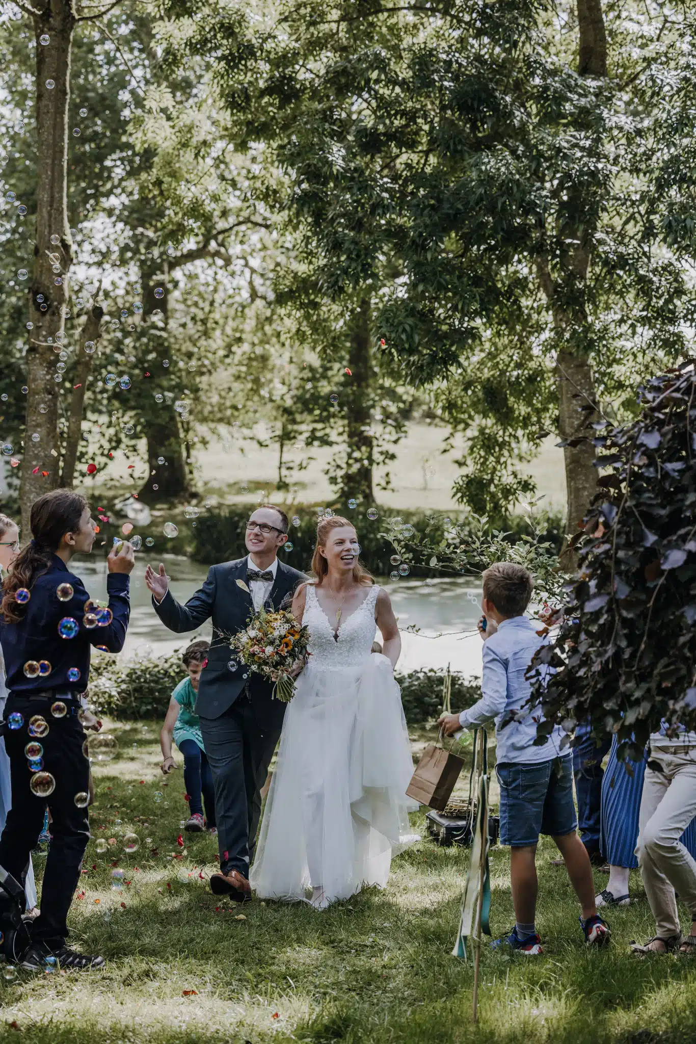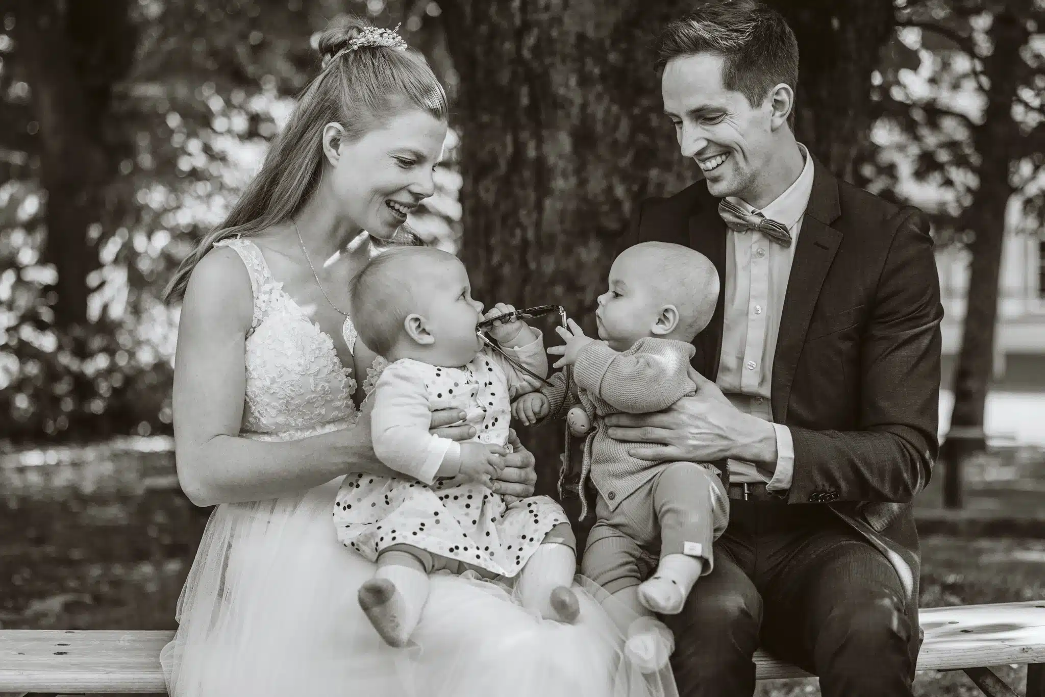 Die Zeremonie unter freiem Himmel war einer dieser Momente, die man als Hochzeitsfotograf liebt. Das weiche nordische Licht, der Wind, der leise durch die Bäume strich, und zwei Menschen, die sich inmitten ihrer Liebsten Versprechen gaben, die unter die Haut gingen. Mein Ziel dabei? Fast unsichtbar zu sein. Die Träne, die verstohlen weggewischt wurde, das laute Lachen bei den Anekdoten der Traurednerin – das sind die Augenblicke, die eine Reportage lebendig machen.