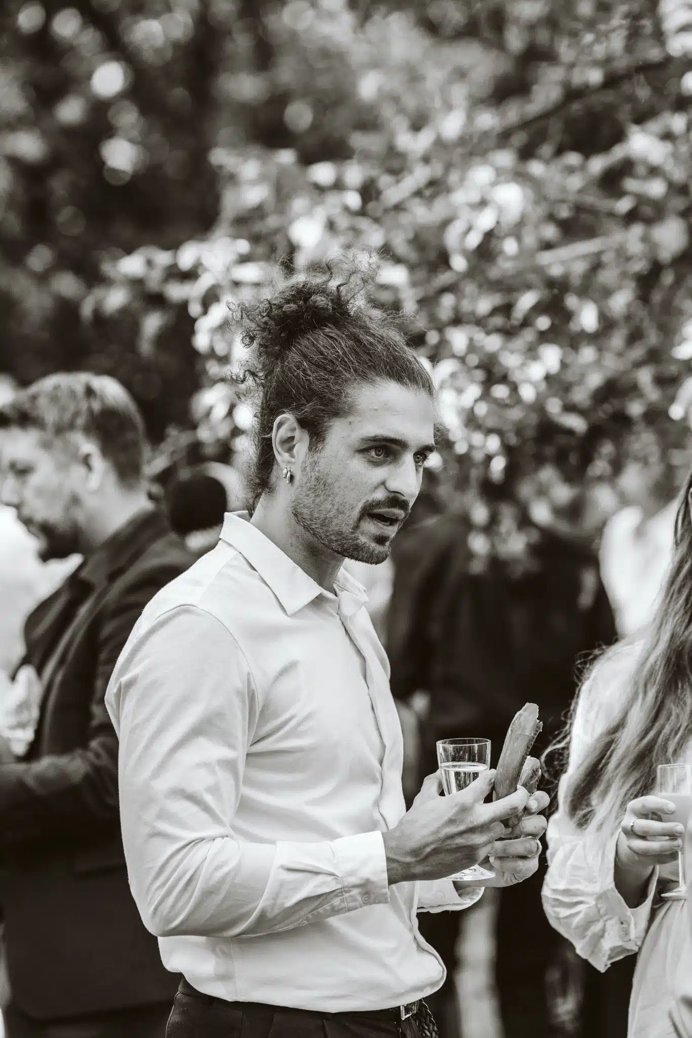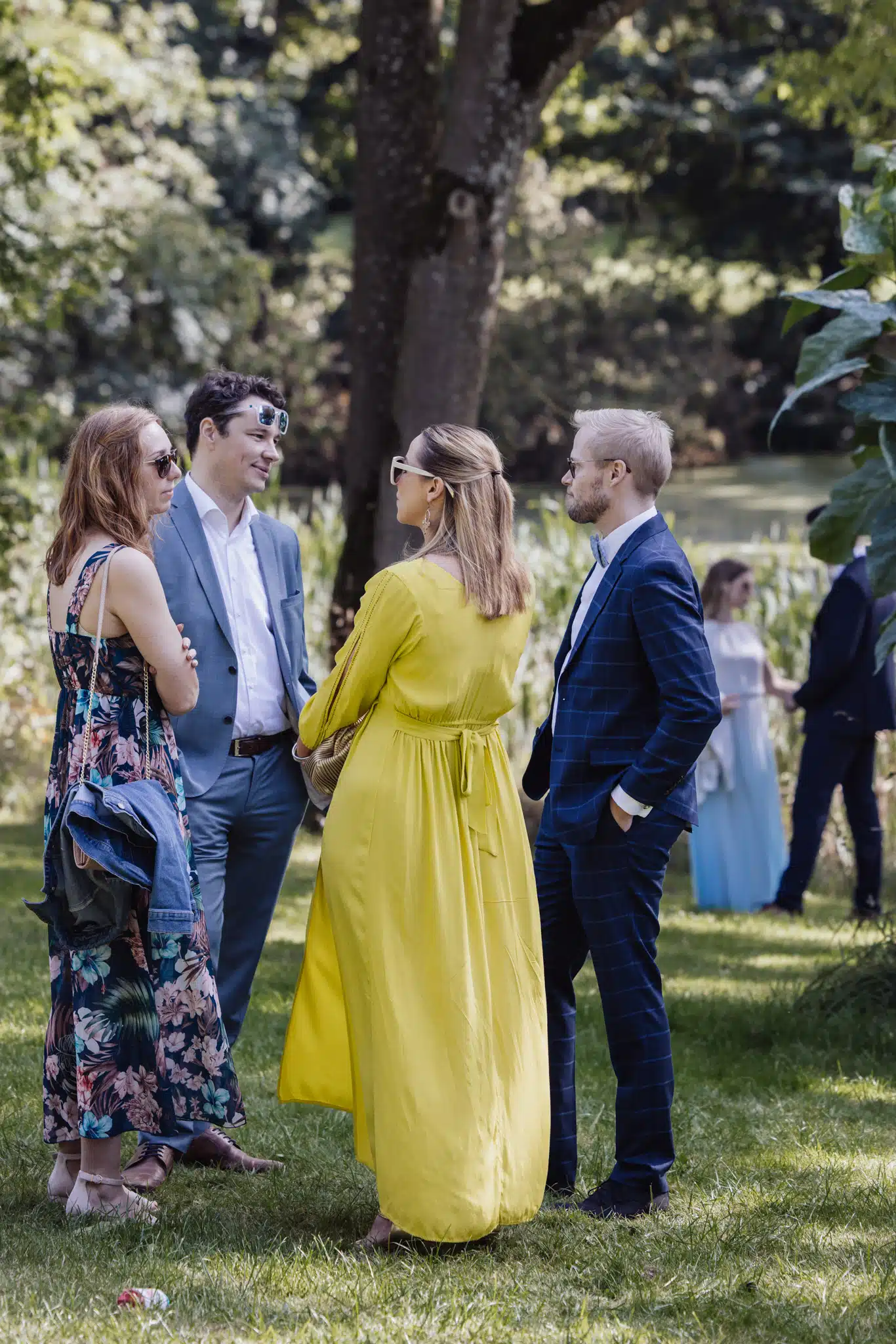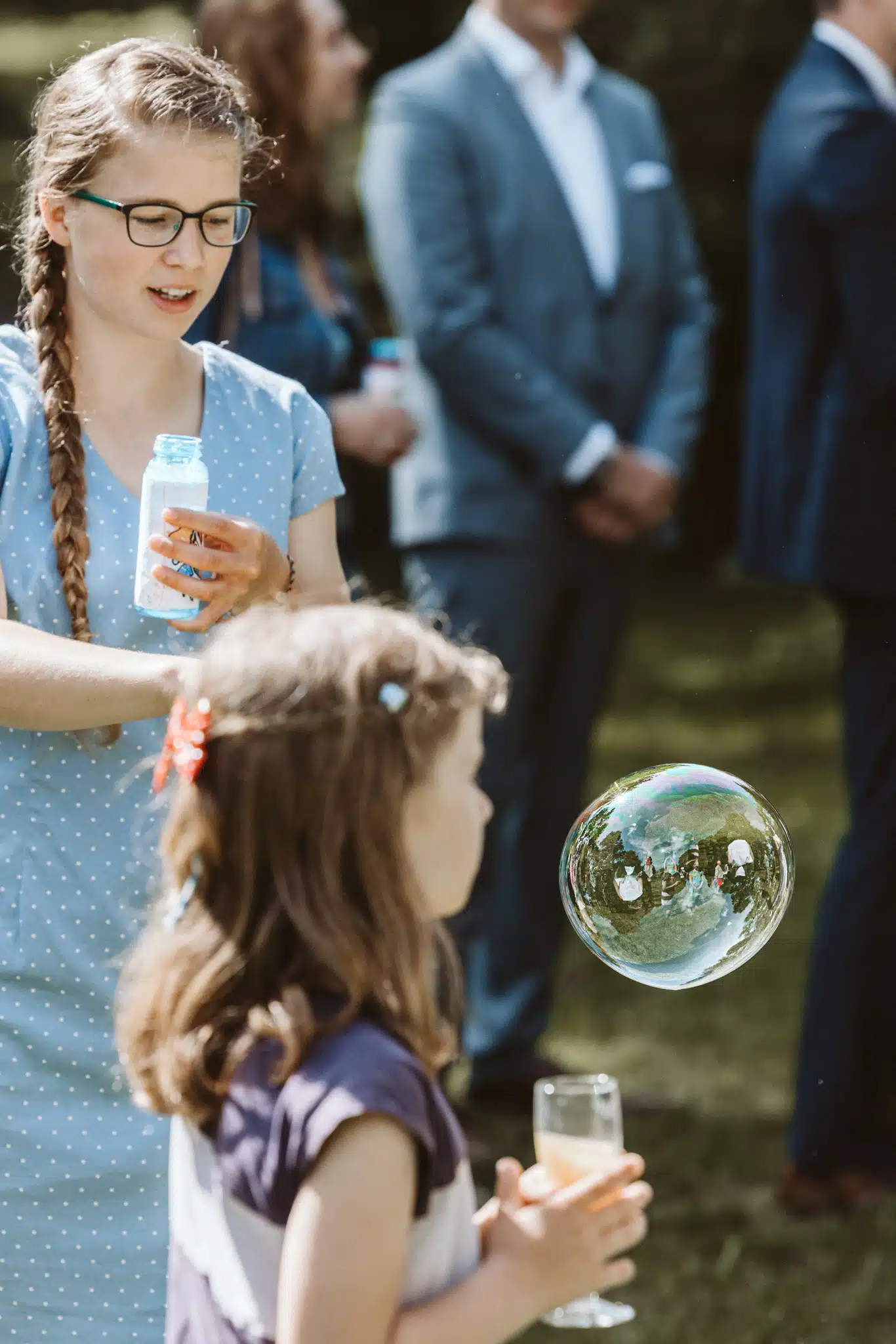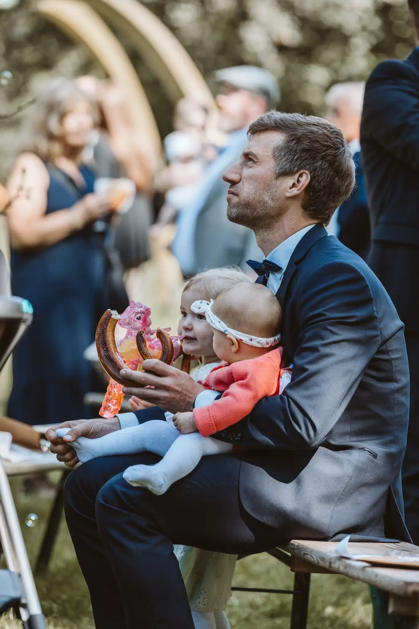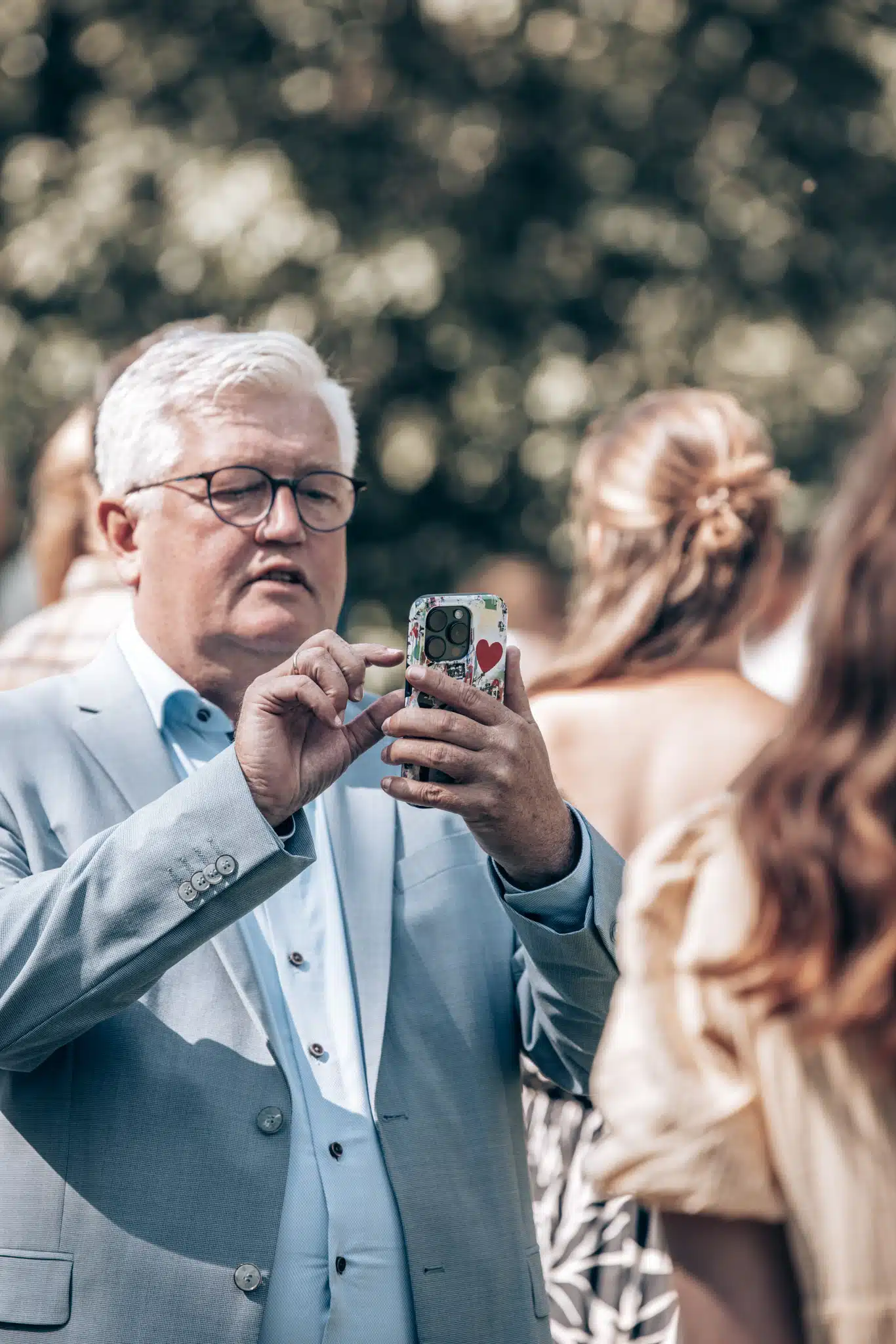 Die Zeremonie unter freiem Himmel war einer dieser Momente, die man als Hochzeitsfotograf liebt. Das weiche nordische Licht, der Wind, der leise durch die Bäume strich, und zwei Menschen, die sich inmitten ihrer Liebsten Versprechen gaben, die unter die Haut gingen. Mein Ziel dabei? Fast unsichtbar zu sein. Die Träne, die verstohlen weggewischt wurde, das laute Lachen bei den Anekdoten der Traurednerin – das sind die Augenblicke, die eine Reportage lebendig machen.