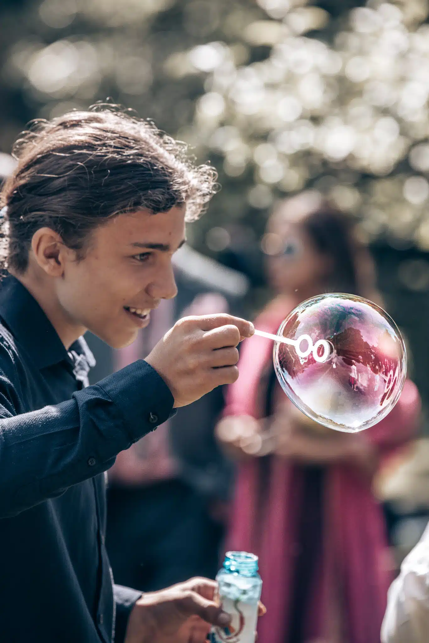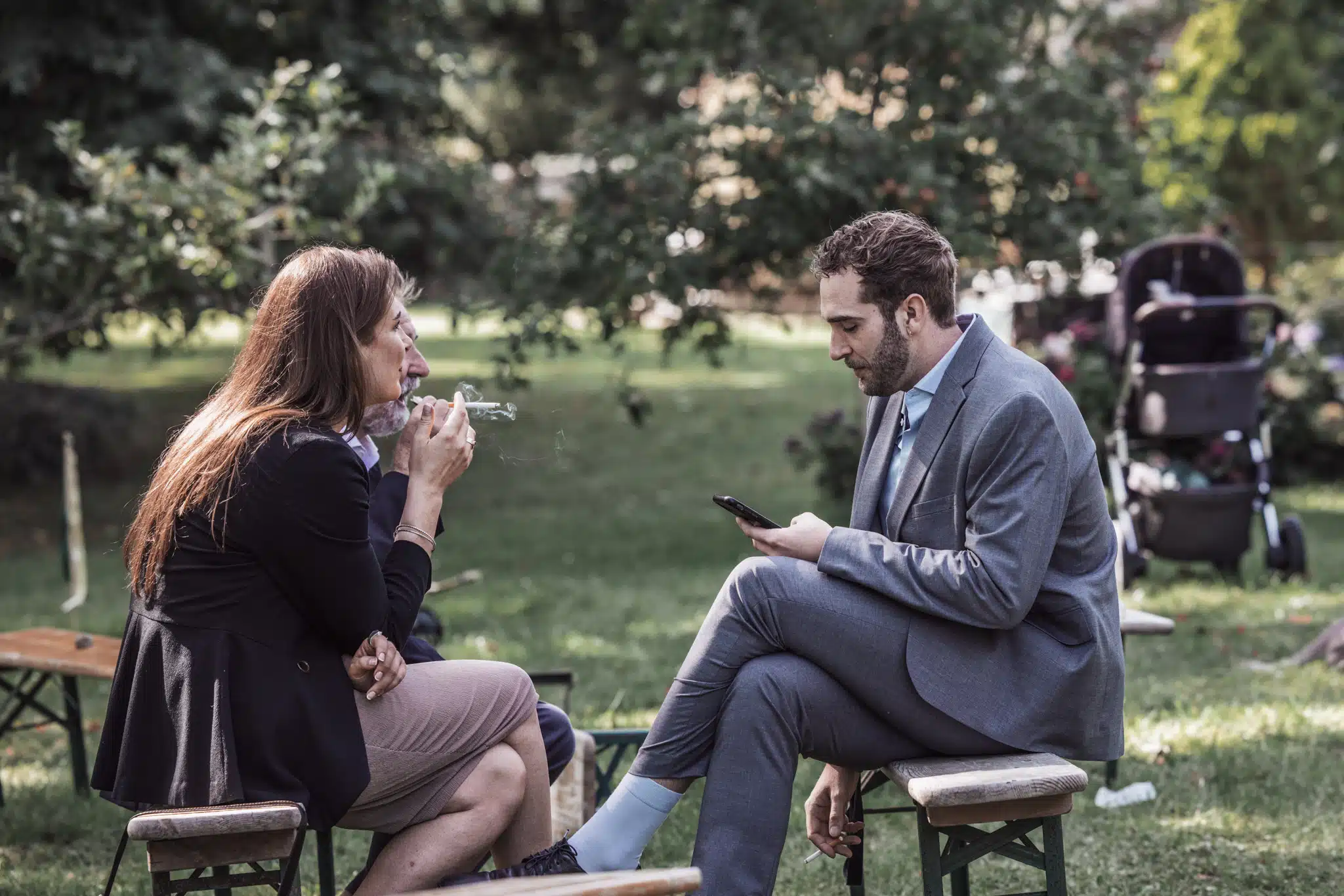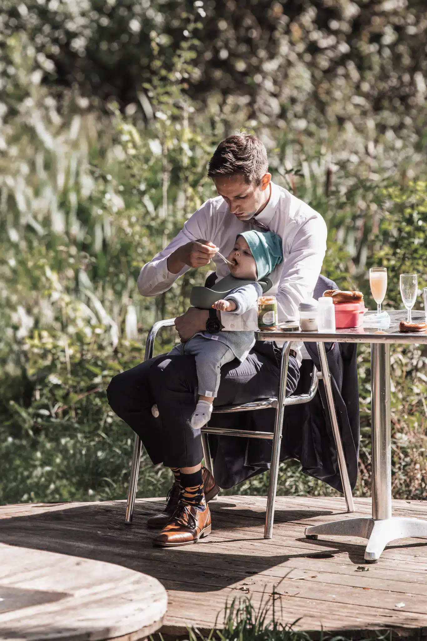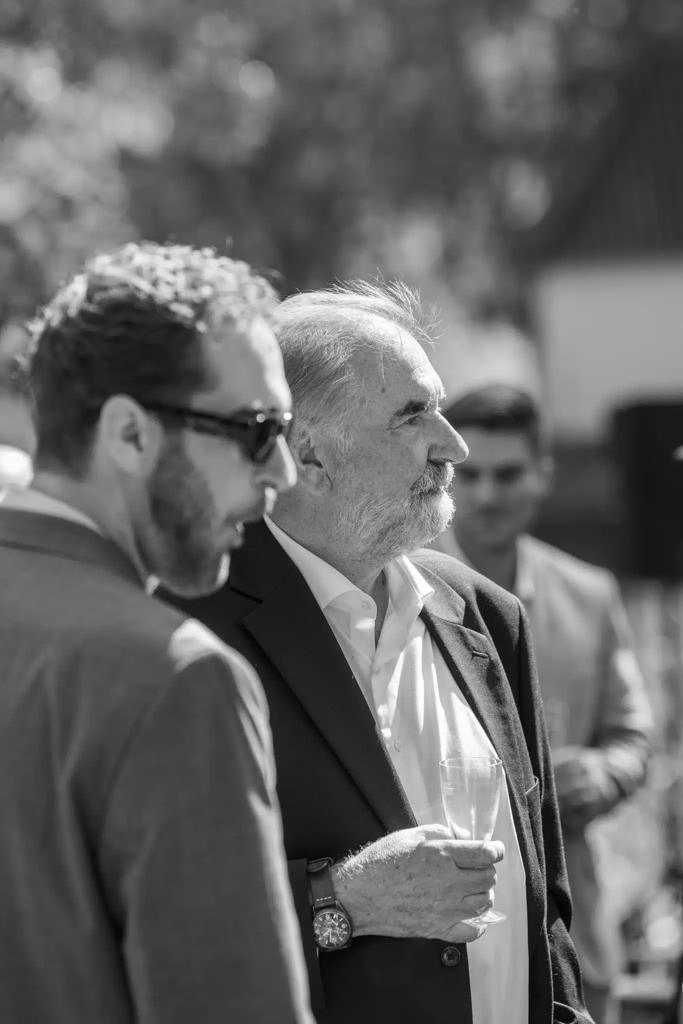 Die Zeremonie unter freiem Himmel war einer dieser Momente, die man als Hochzeitsfotograf liebt. Das weiche nordische Licht, der Wind, der leise durch die Bäume strich, und zwei Menschen, die sich inmitten ihrer Liebsten Versprechen gaben, die unter die Haut gingen. Mein Ziel dabei? Fast unsichtbar zu sein. Die Träne, die verstohlen weggewischt wurde, das laute Lachen bei den Anekdoten der Traurednerin – das sind die Augenblicke, die eine Reportage lebendig machen.