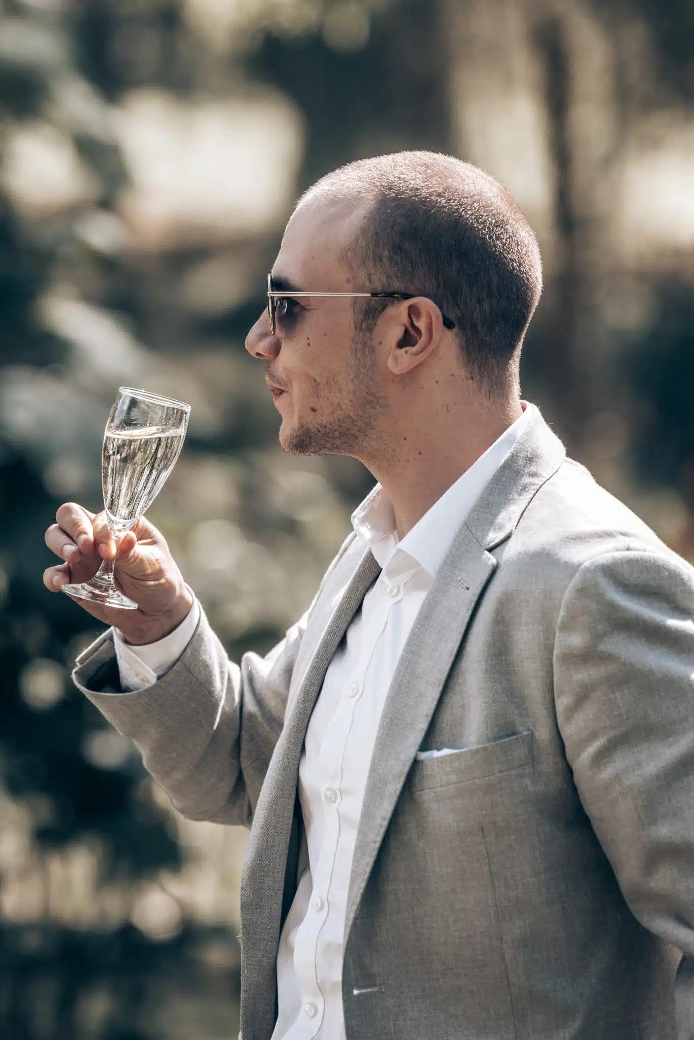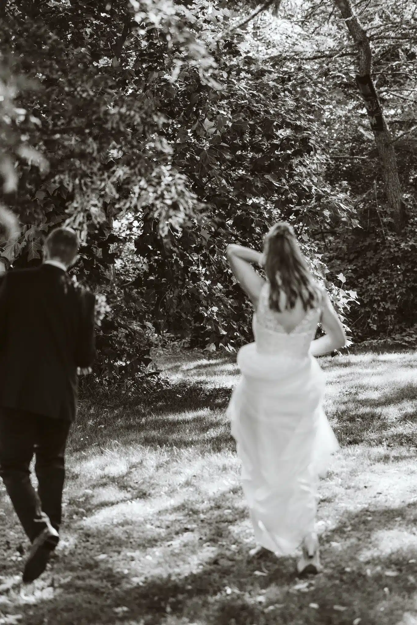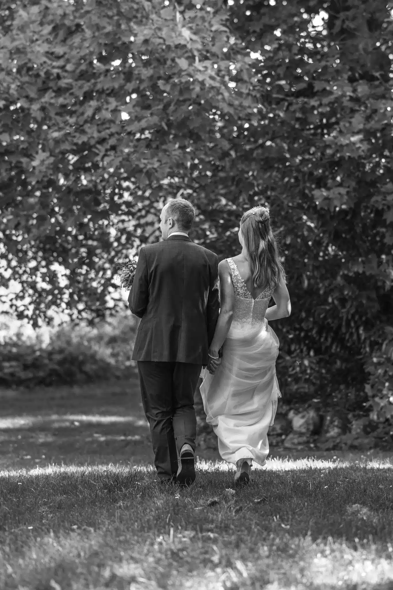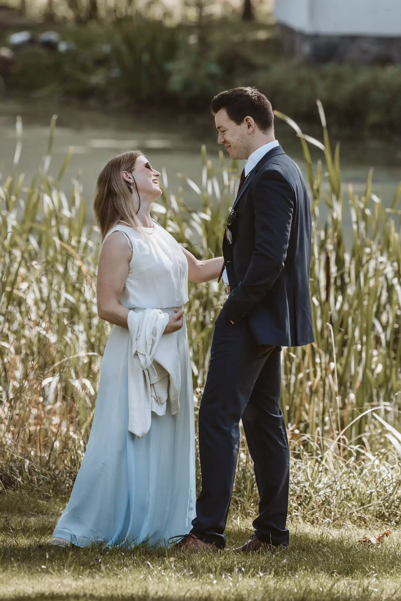 Nach der Trauung bot das weitläufige Gelände des Wittkielhofs unzählige Möglichkeiten für die Paarfotos. Wir haben uns für einen entspannten Spaziergang entschieden, weg vom Trubel der Gäste. Ohne steife Posen, einfach Wilma und Hannes, wie sie sind. Die Backsteinwände des Hofs, die alten Tore und die weiten Felder drumherum bildeten den perfekten Kontrast zur Eleganz der beiden.